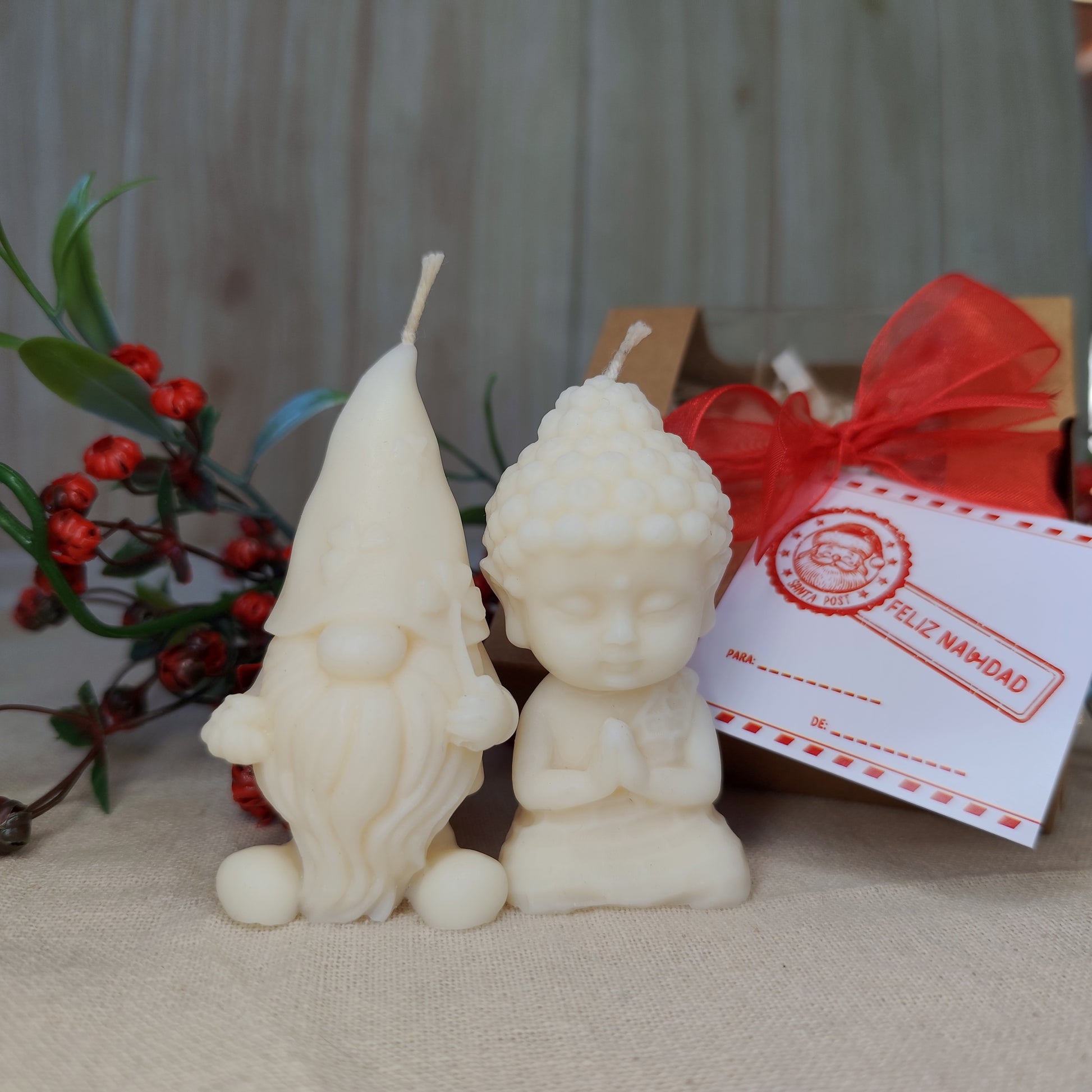 Este pack reúne dos figuras llenas de simbolismo, fabricadas con cera de soja 100% vegetal.