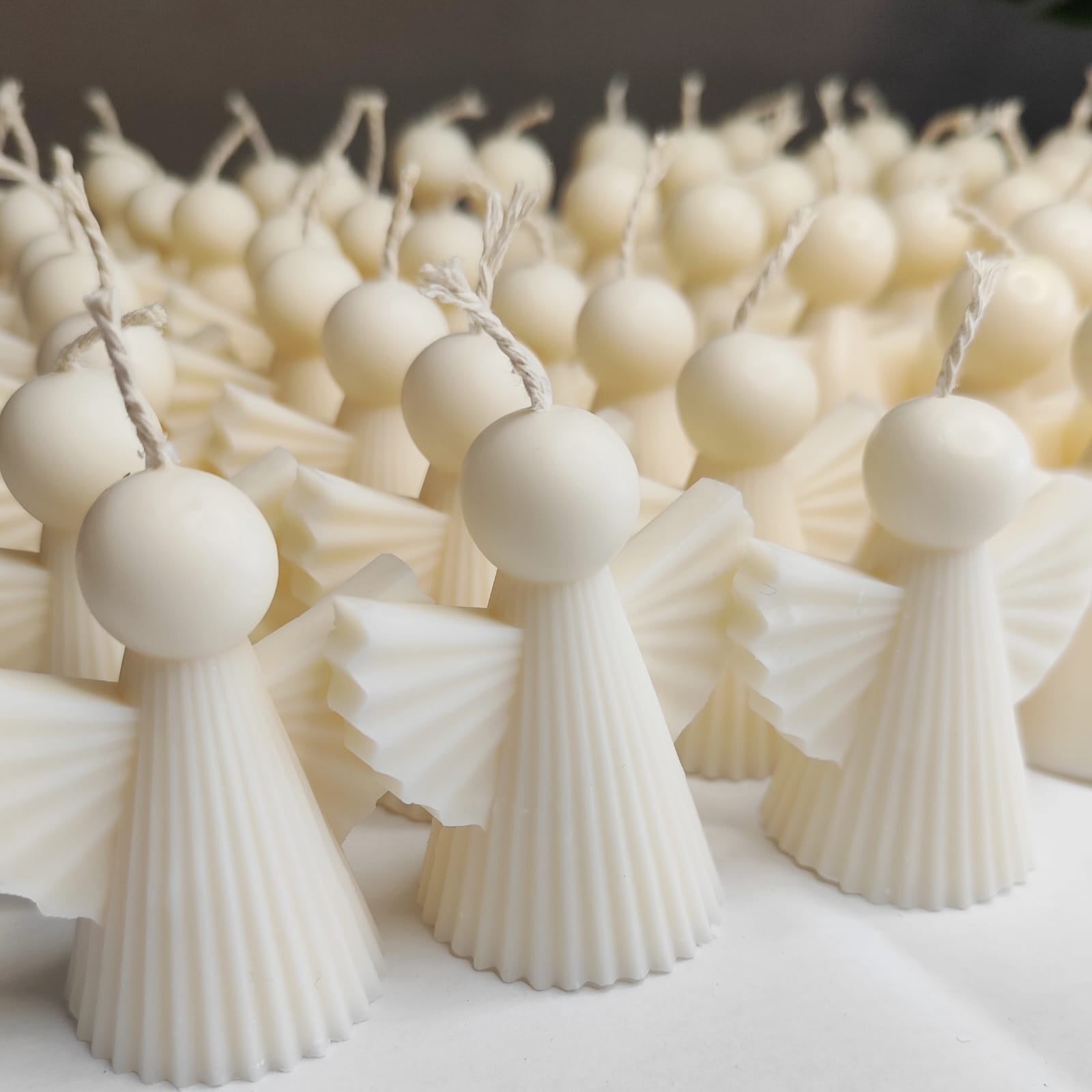 Vela en forma de ángel, creada para acompañar momentos espirituales y significativos como bautizos, primeras comuniones o confirmaciones.